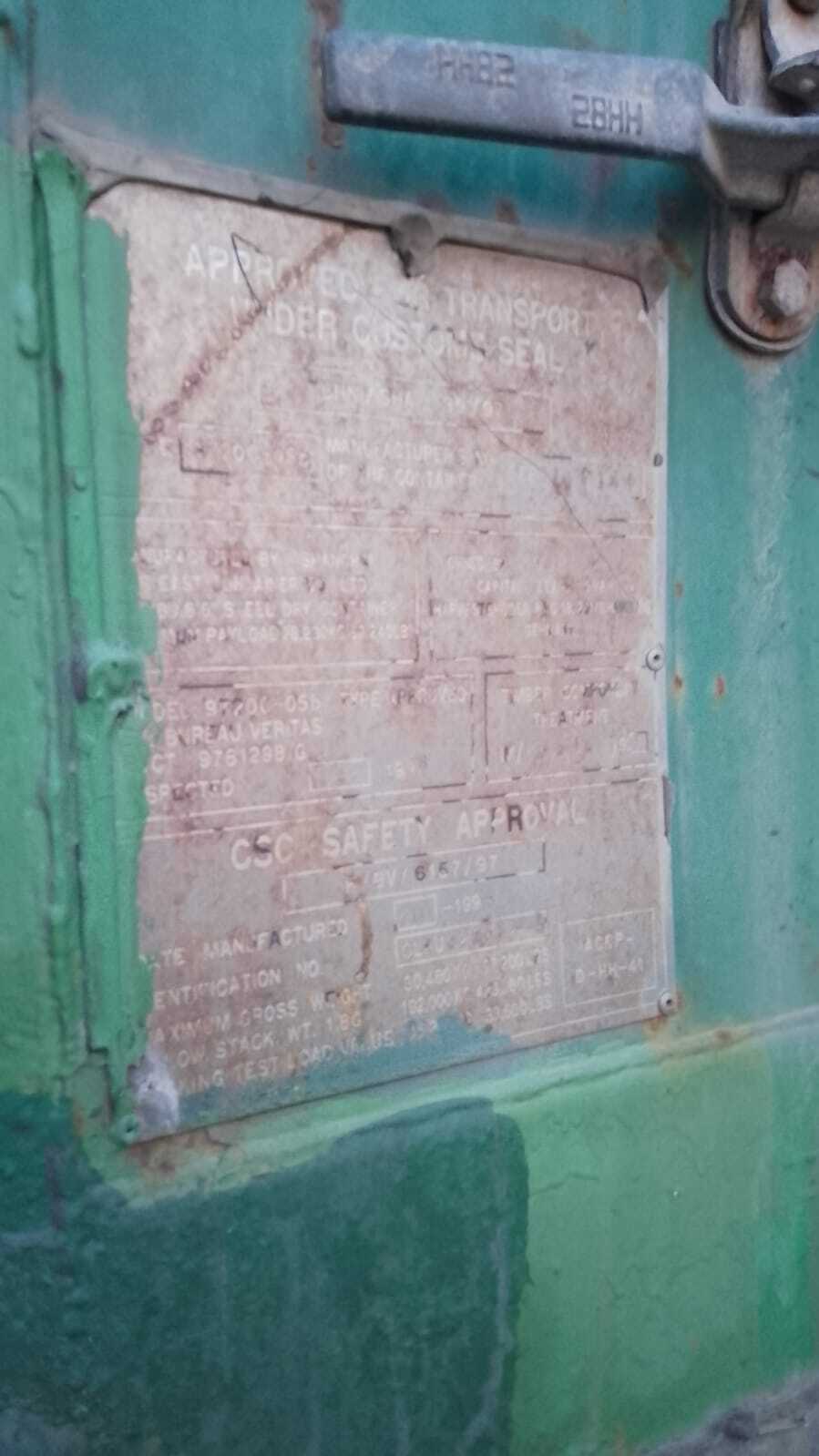 • с действующей табличкой КБК (соответствуют международной Конвенции по безопасности контейнеров=CSC plate valid) — минимум 12 месяцев;