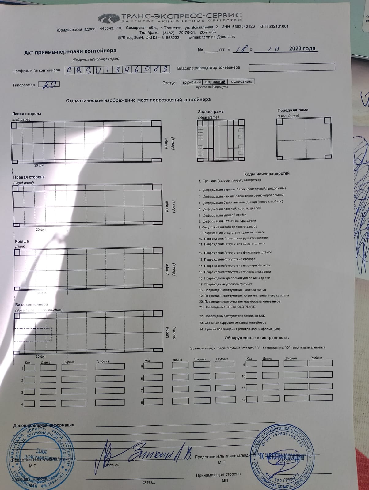 Контейнер 20 футов № CRSU1346083