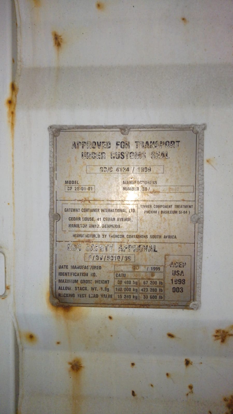 • с действующей табличкой КБК (соответствуют международной Конвенции по безопасности контейнеров=CSC plate valid) — минимум 12 месяцев;
