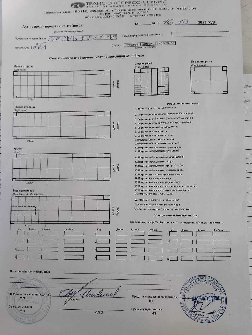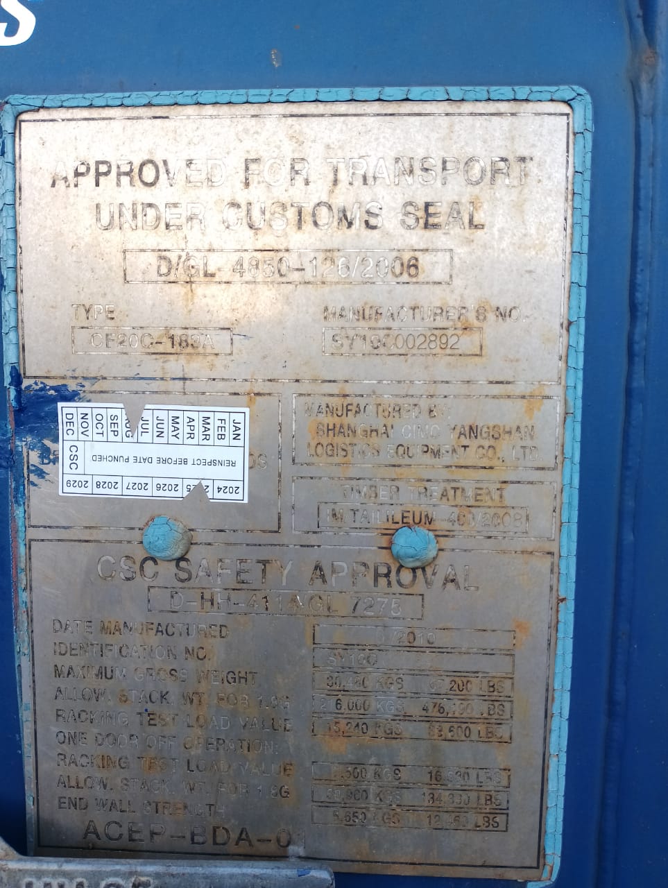 • с действующей табличкой КБК (соответствуют международной Конвенции по безопасности контейнеров=CSC plate valid) — минимум 12 месяцев;