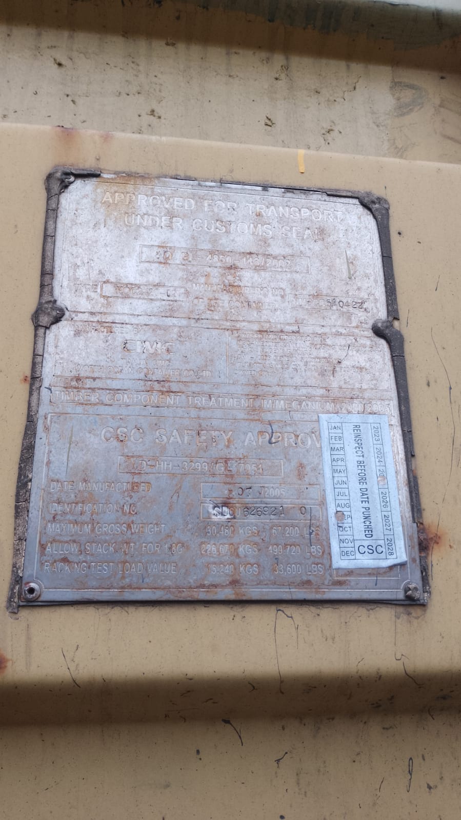 • с действующей табличкой КБК (соответствуют международной Конвенции по безопасности контейнеров=CSC plate valid) — минимум 12 месяцев;