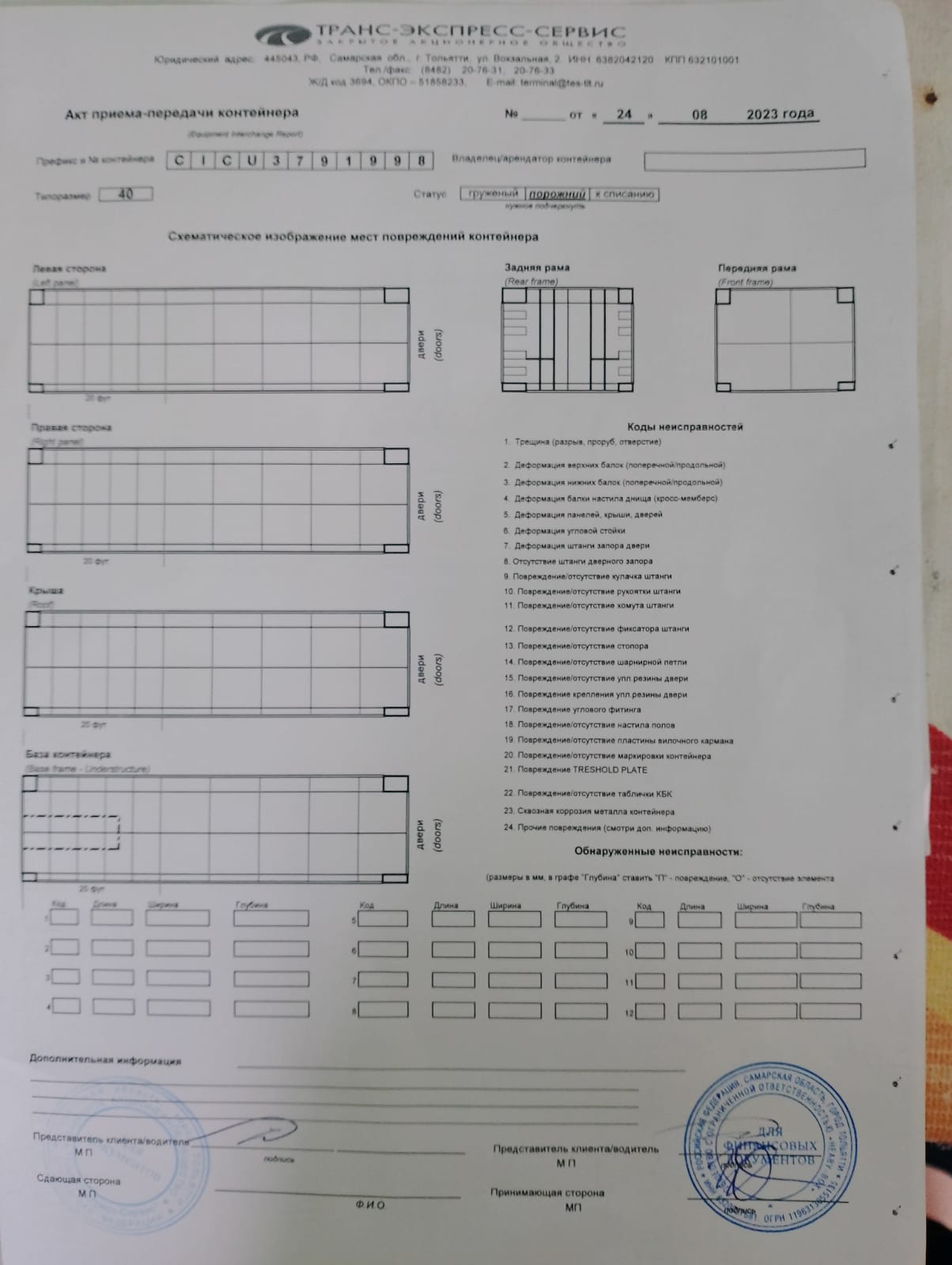 • Масса тары (вес пустого контейнера): около 3,7 - 4,2 тонны.